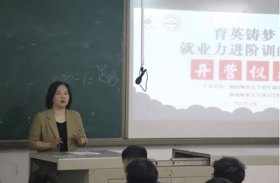 4月11日,由闽南师范大学招生就业处与闽南师范大学体育学院联合主办的“闽南师范大学‘育英铸梦’就业力进阶训练营”开营仪式在笃行楼124举行。体育学院党委副书记方芳、副院长张东军出席本次活动。