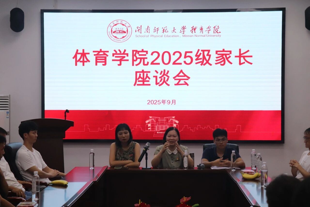 9月14日下午,体育学院2025级新生家长座谈会在综合训练馆会议室顺利举行。本次座谈会以“家校携手,共育未来”为主题,旨在搭建家校沟通平台,凝聚育人共识,助力新生顺利适应大学生活。学院党委副书记方芳、团委书记白秋纯、2025级全体班主任及新生辅导员庄浦祥与近百名家长共同参与。现场气氛热烈,交流融洽。座谈会由庄浦祥主持。