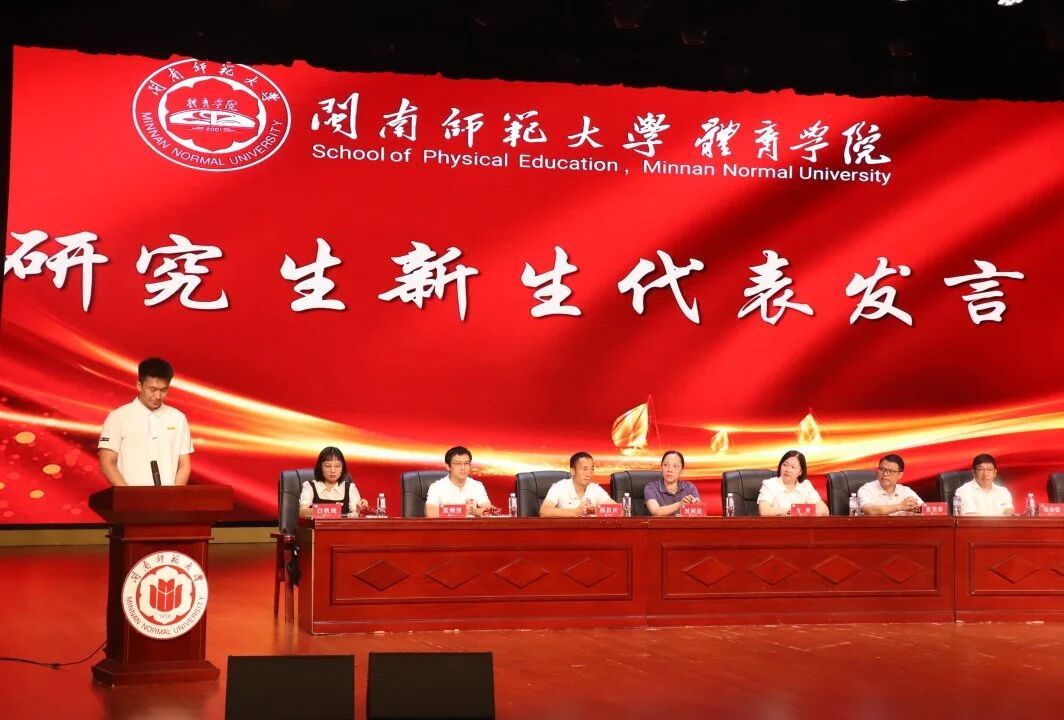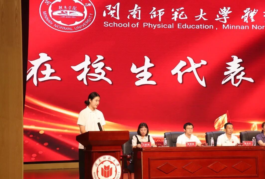 2025级体教4班庄润锴同学作为本科生代表发言:他坦言站在大学起点的兴奋与忐忑,提出“大学是人生分水岭”的思考,呼吁同学们拒绝放纵、珍惜时光,学会独立思考与批判思维,用日常的坚持与耕耘,成长为成熟、稳重、自信的闽师体育人。
