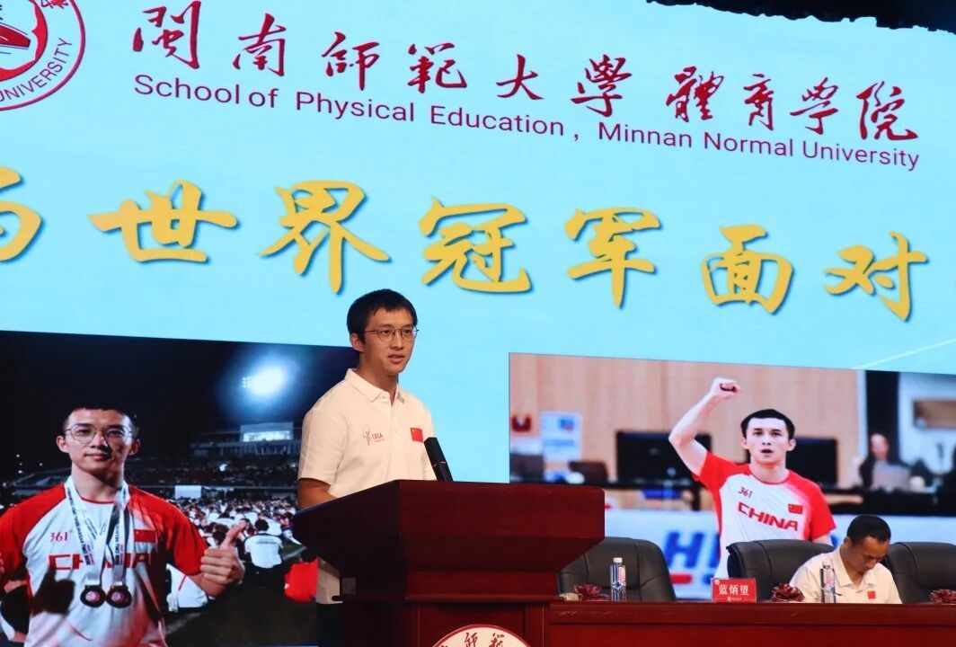 体育人逐梦赛场,终盼载誉而归,榜样力量是前行的明灯。世界冠军蓝炳望夺冠的视频点燃全场热情。蓝炳望分享从日常艰苦训练、咬牙克服伤病,到赛场力压对手夺魁的经历,生动诠释“奖牌源于日积月累的拼搏”。他还耐心解答“如何平衡训练与学业”“如何调整挫折心态”等新生关心的问题,让大家真切感受“我与世界冠军面对面”的激励,为新生追梦注入满满动力。