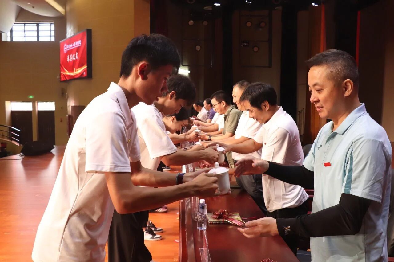 传承尊师重道的文化传统,典礼现场举行了奉茶与赠书仪式。新生代表向老师奉上热茶,以表敬意与感恩;老师们则回赠充满力量与哲理的书籍,愿同学们以书为舟,在智慧海洋中汲取养分、扬帆远航。