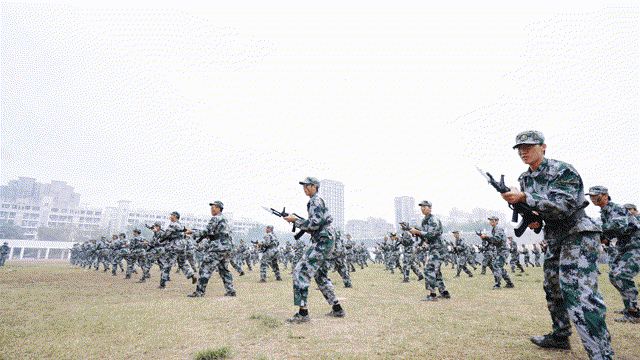 刺杀操与匕首操环节,他们动作刚劲有力、整齐划一,凭借出色的身体素质,完美诠释了新时代青年的担当精神。